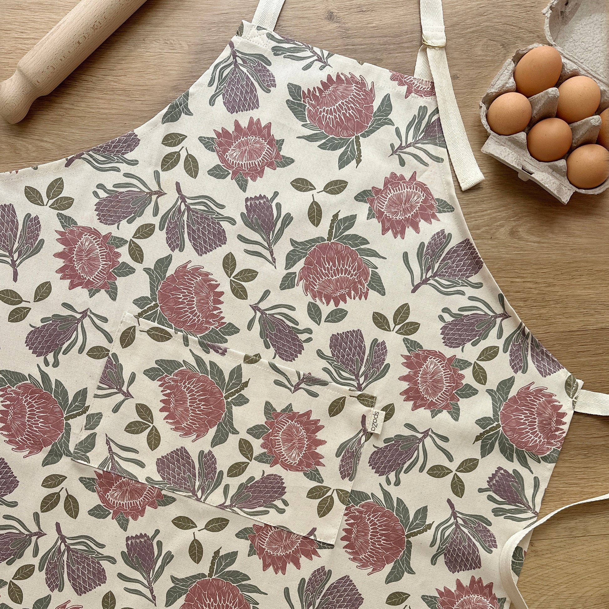 Bring everyday beauty and lasting durability to your kitchen with our 100% cotton adjustable apron, available in our signature Protea (blue and green) or Sunbird & Pincushion (red, yellow and blue) prints. Designed for real kitchens and real life, this breathable cotton apron is crafted from soft yet hard-wearing 100% cotton and features an adjustable D-ring neck tie for a comfortable fit, a generous front pocket, and long cotton waist ties. Both practical and beautiful, it makes a thoughtful gift for home cooks, bakers, gardeners, or anyone who appreciates functional textiles with character.