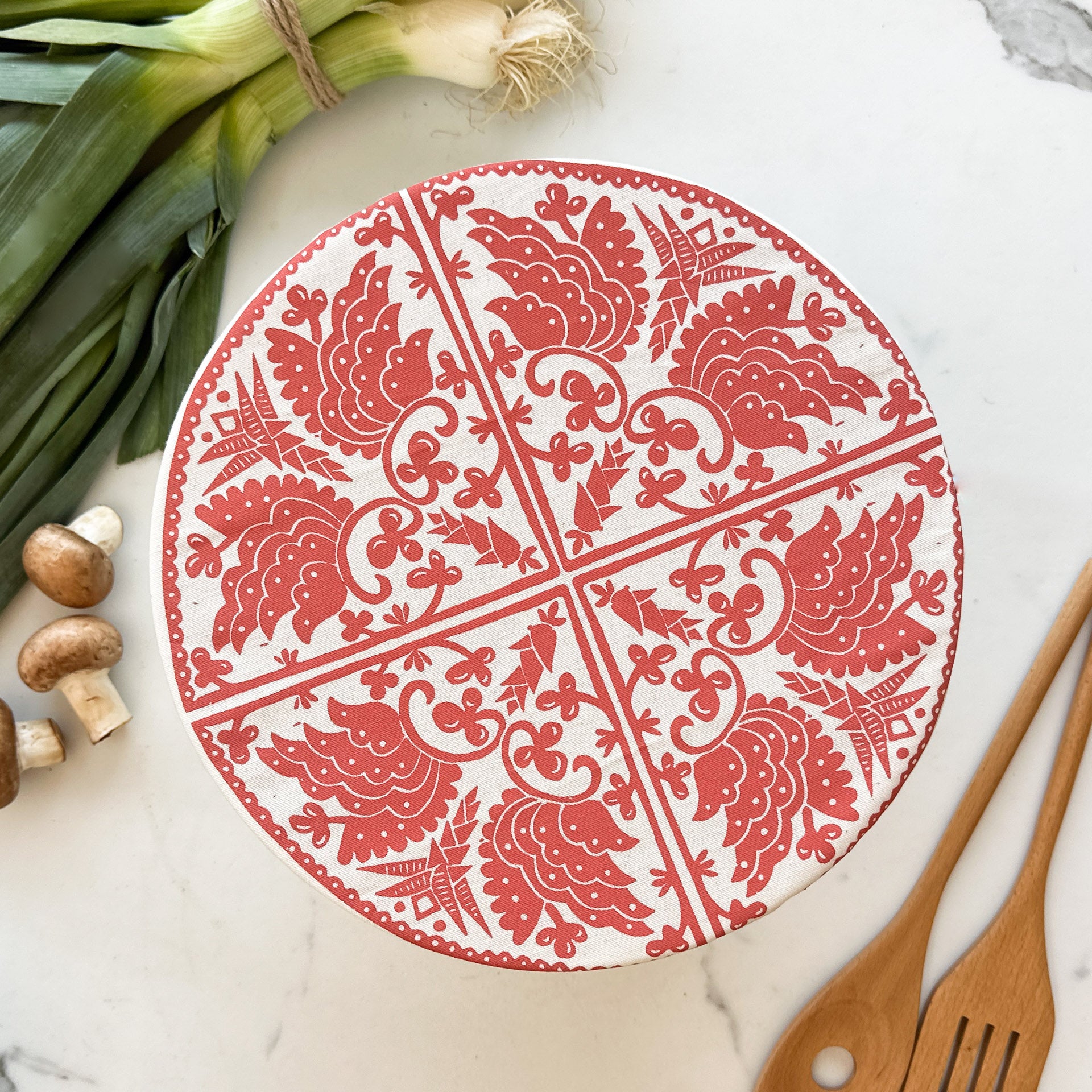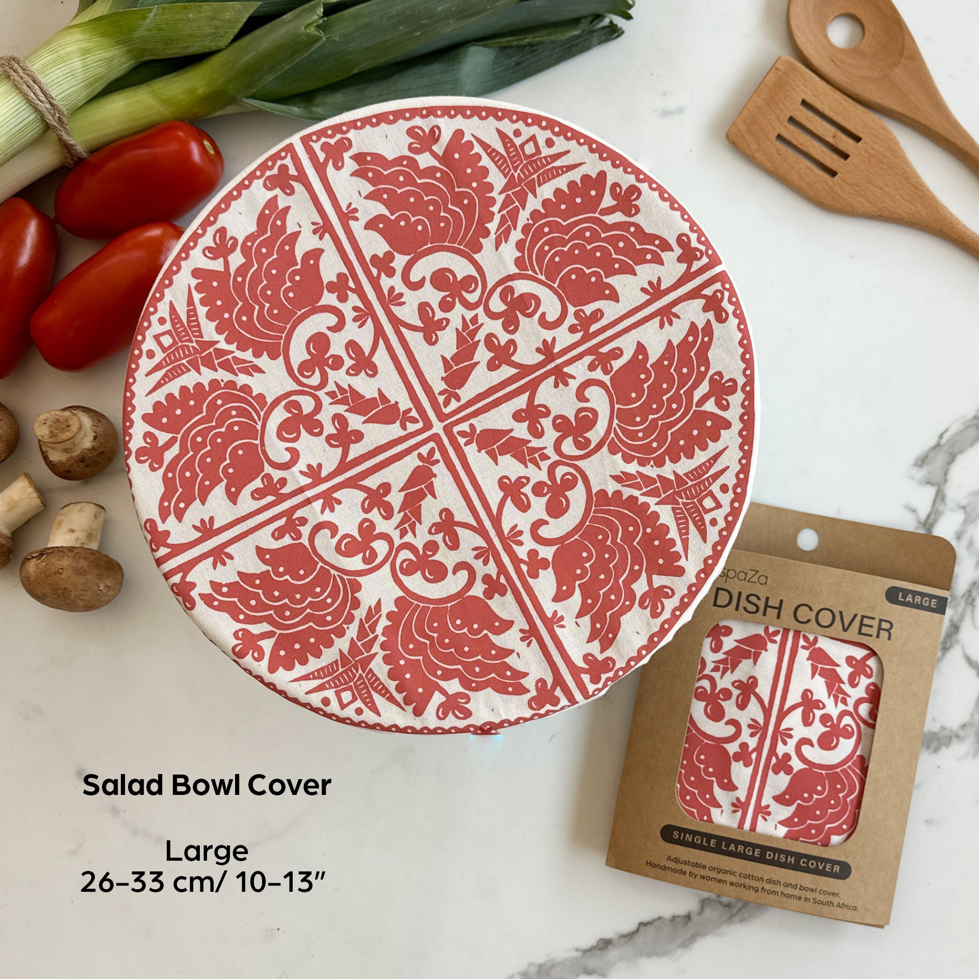Our large dish cover is the perfect fit for salad bowls, offering a convenient, eco-friendly alternative to plastic wrap. Its breathable design prevents sweating, condensation, and wilting, keeping leafy greens fresh. With every use, you save one third a meter (13.1 in) of plastic wrap—for years to come! Beautiful on the table, efficient in the fridge, and effortlessly impressive at a potluck!