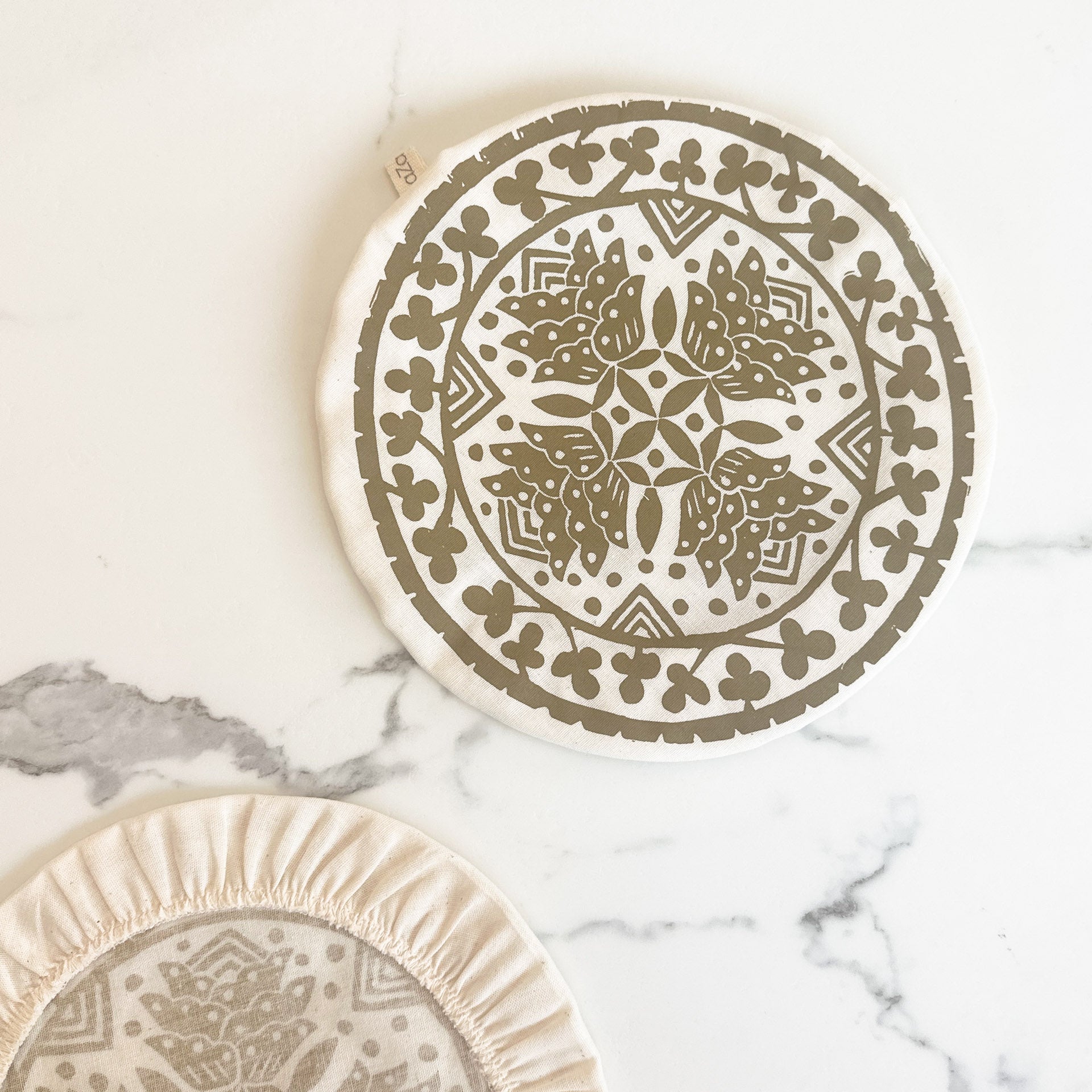 Our products are made with organic cotton and biodegradable materials. Dish covers are tested to be food-safe and microwave-safe, featuring specially formulated elastic for a secure, lasting fit.