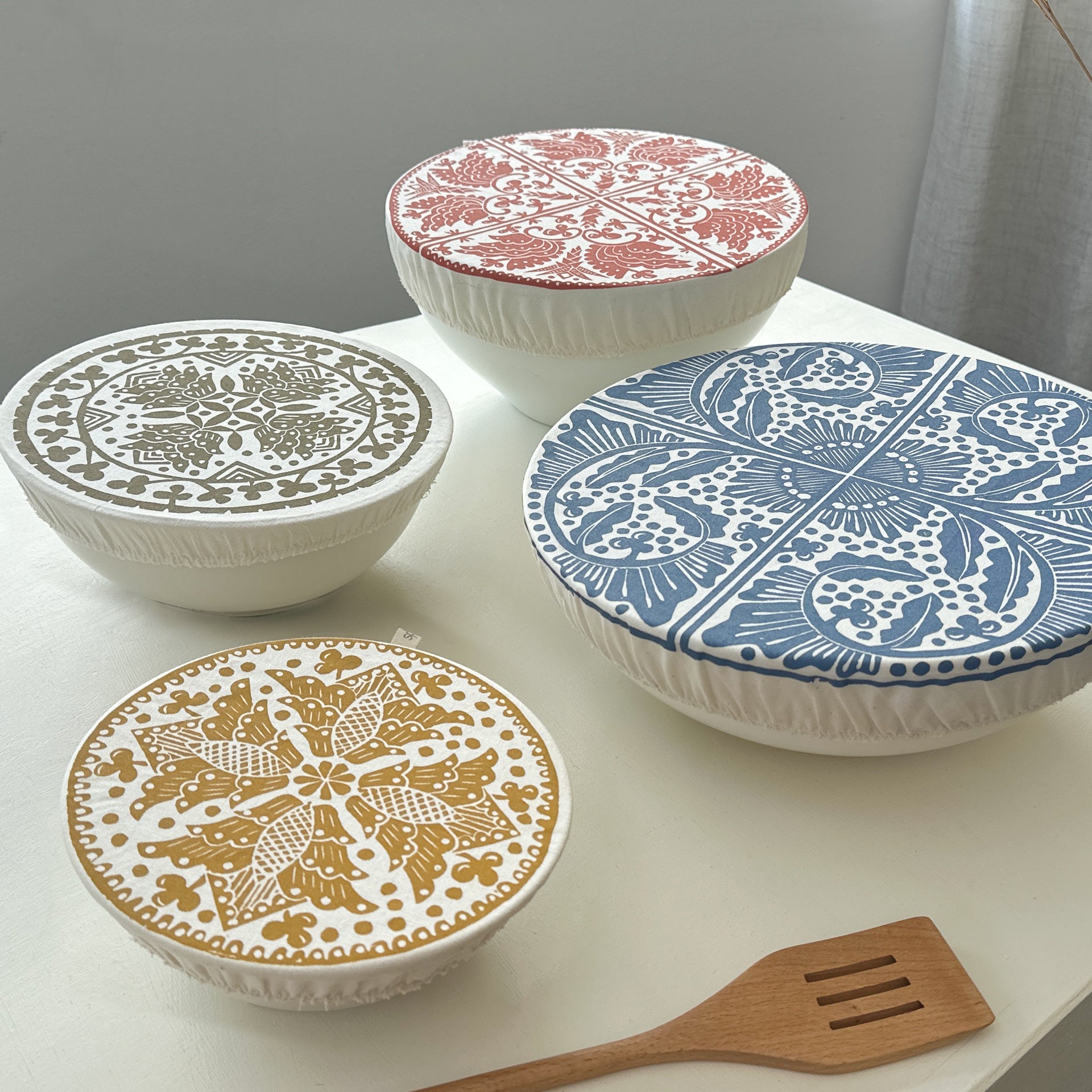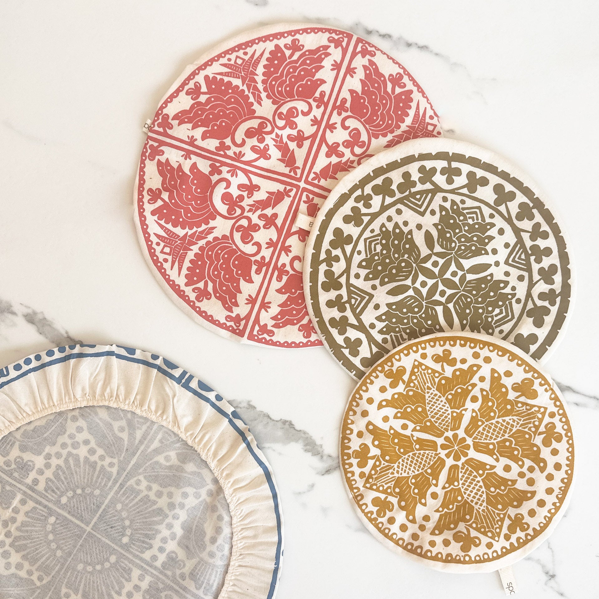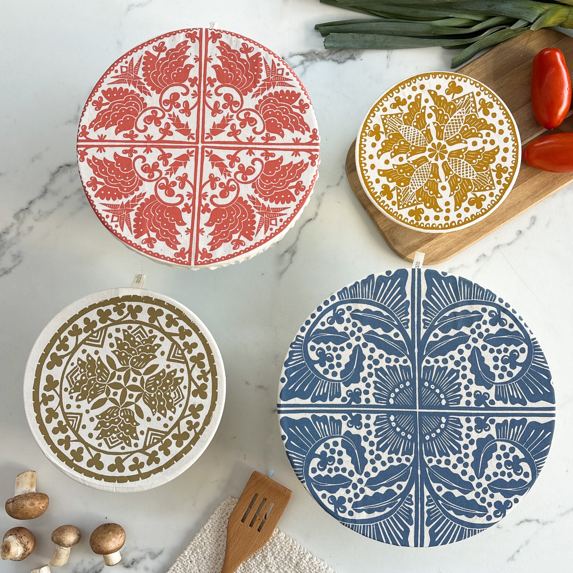The essential set for every kitchen! Our four-pack includes two larger covers for weekend gatherings and entertaining and two smaller sizes for weekday family meals—ensuring you always have the perfect fit. Say goodbye to the guilt of plastic wrap and take advantage of the benefits of breathable covers that allow food to cool instantly in the fridge without sweating or condensation. Easy to pop on and off for ongoing dishes, simple to wash, and endlessly reusable, this set is as practical as it is eco-friendly. A thoughtful and beautiful gift for any home cook!