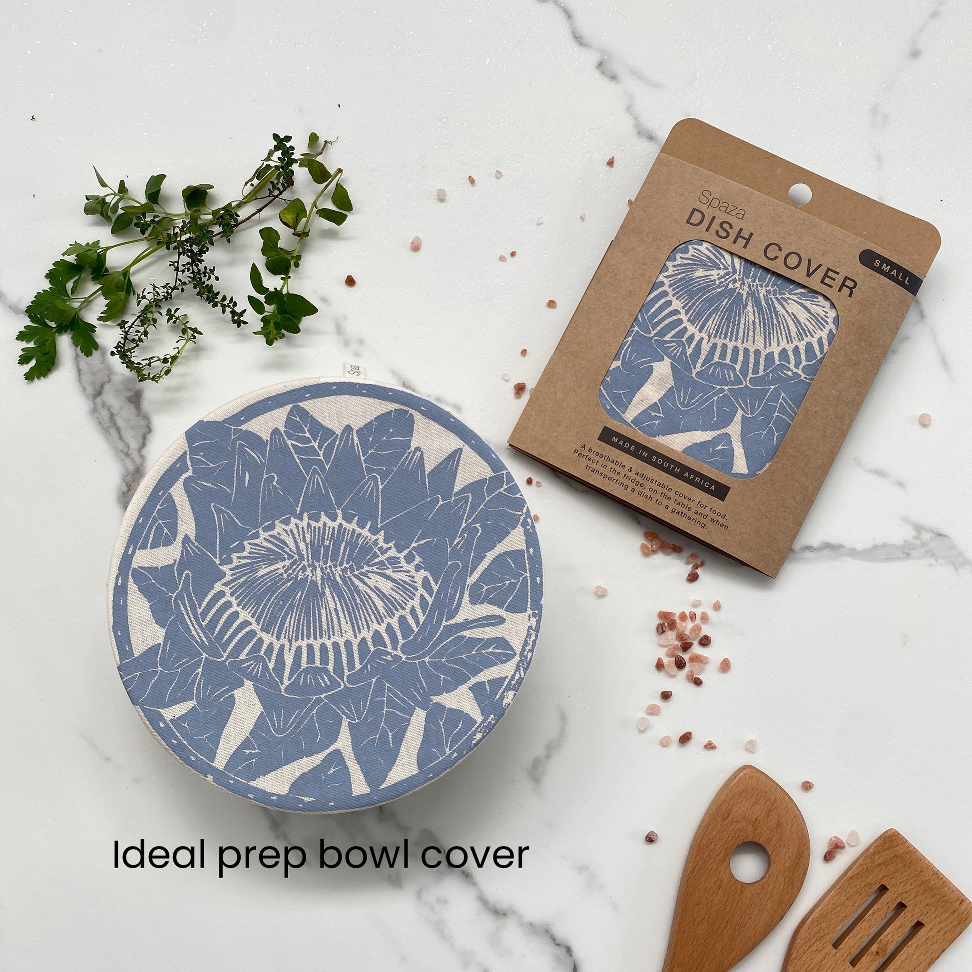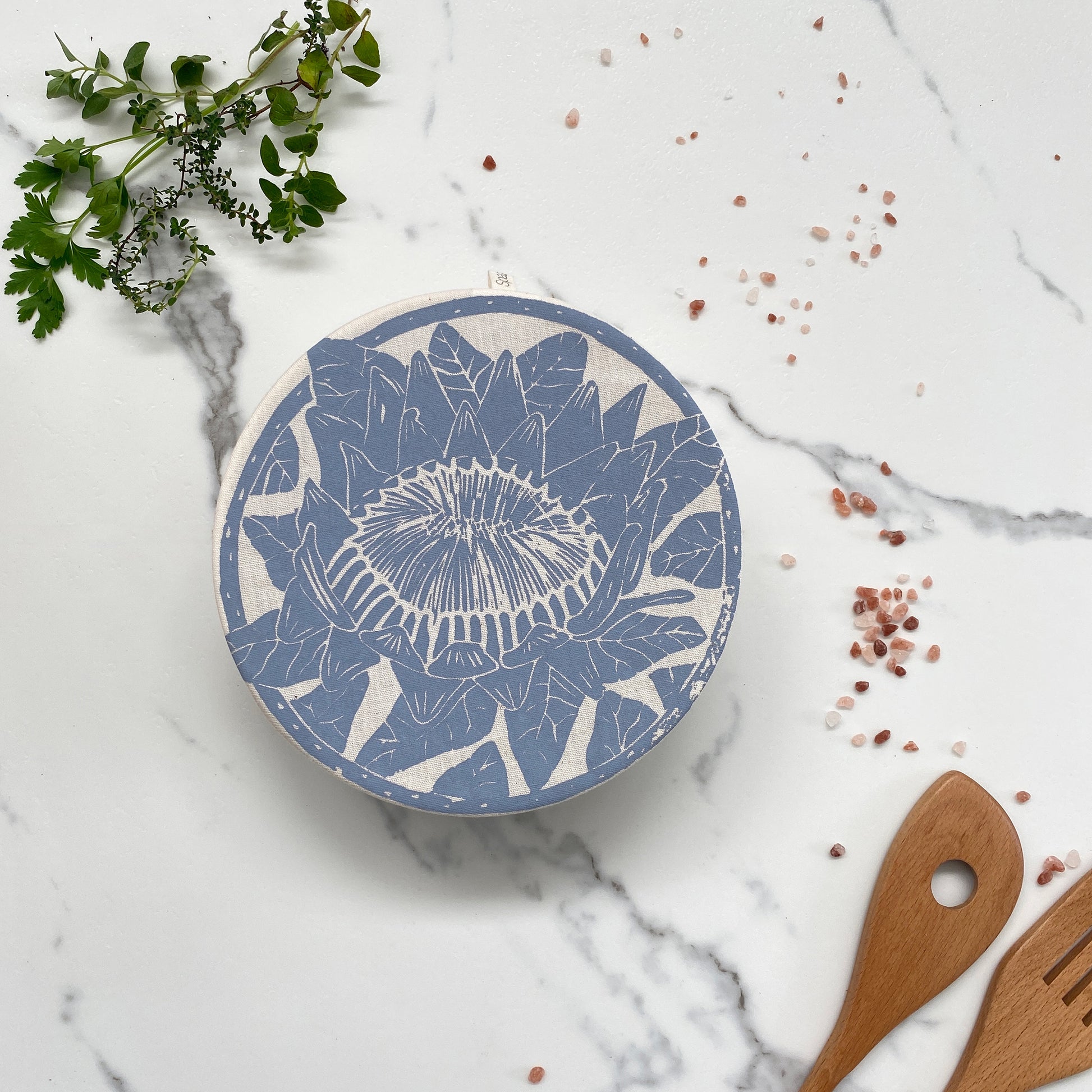 Add beauty and function to your kitchen with our reusable cotton bowl cover in Protea Print Drift Blue. Thoughtfully sized to fit noodle bowls, curry accompaniments, dessert toppings, and poke bowls, this breathable, washable cover is a practical alternative to single-use plastic wrap. Designed for everyday use, it keeps food covered on the counter or in the fridge while adding a stylish, nature-inspired touch to your table.