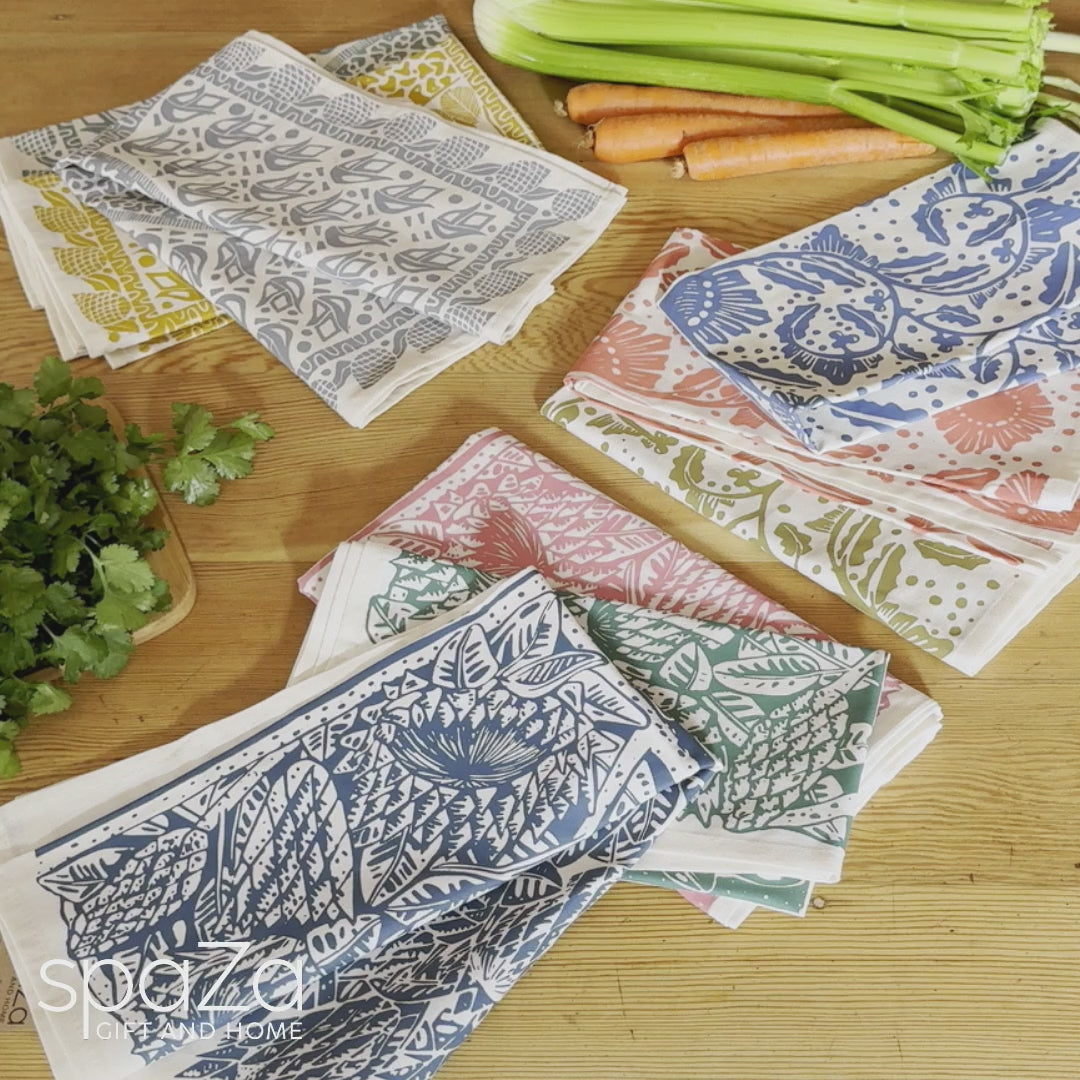 Available in our signature Protea Print in Ocean Blue, Bottle Green, and Terrarosa, this 3-pack ensures you always have a wrap ready to use. Also great for wrapping bread, gifts, or as table napkins—a beautiful alternative to single-use packaging!